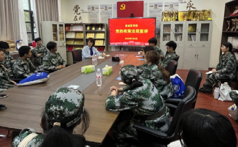 在理论教育环节,党委书记傅侃达为新生讲授 “开学第一课”,围绕 “传承红色基因、担当时代使命” 这一核心主题,深入浅出地引导学生树立远大理想,筑牢思想根基,让新生们深刻理解作为新时代医学生所肩负的责任与使命;党委副书记郭佳开展党的政策宣讲与民族团结教育,系统讲解党的基本知识,并组织新生学习大学生中国特色社会主义民族宗教理论知识,帮助学生树立正确的马克思主义宗教观,增强维护国家统一和民族团结的自觉性;党委办公室主任司伟荣则带来 “m88APP官网医学发展史” 专题讲座,带领新生回顾学校百年医学发展历程,深化新生对学校百年医学传统与精神谱系的理论认知,激发新生对学校和医学专业的认同感与自豪感。