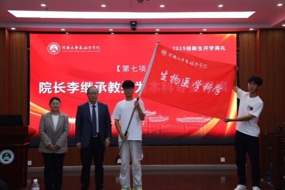 学院深刻认识到入学教育开端的重要引领作用,将新生开学典礼作为入学教育的重要序幕,举办得隆重而热烈。在典礼现场,院长李继承教授亲自为生物医学科学新专业授旗。这一庄严的仪式,不仅标志着生物医学科学新专业正式全面启航,更为全体 2025 级新生注入了强烈的使命感与归属感,让新生们在踏入大学校门之初,便感受到了医学专业的庄重与责任,为整个入学教育奠定了昂扬向上的基调。